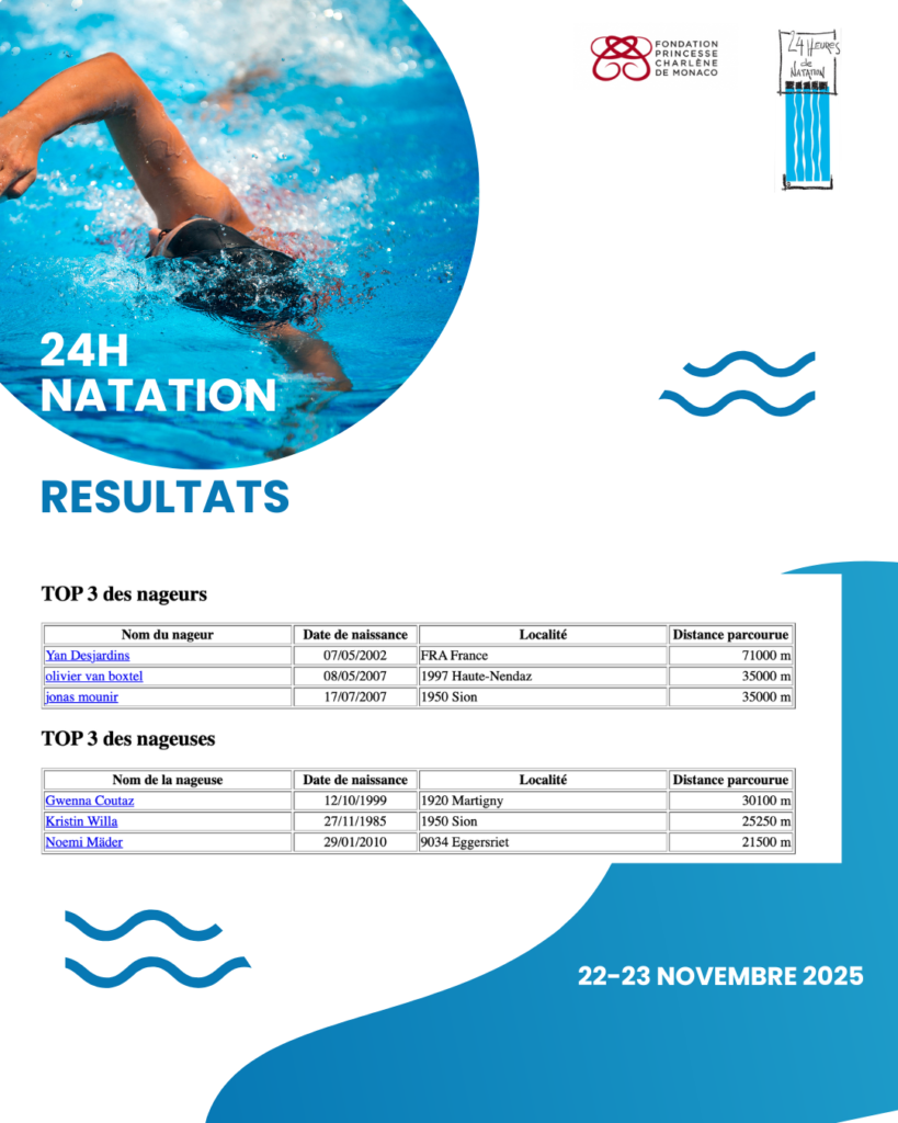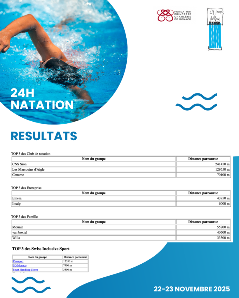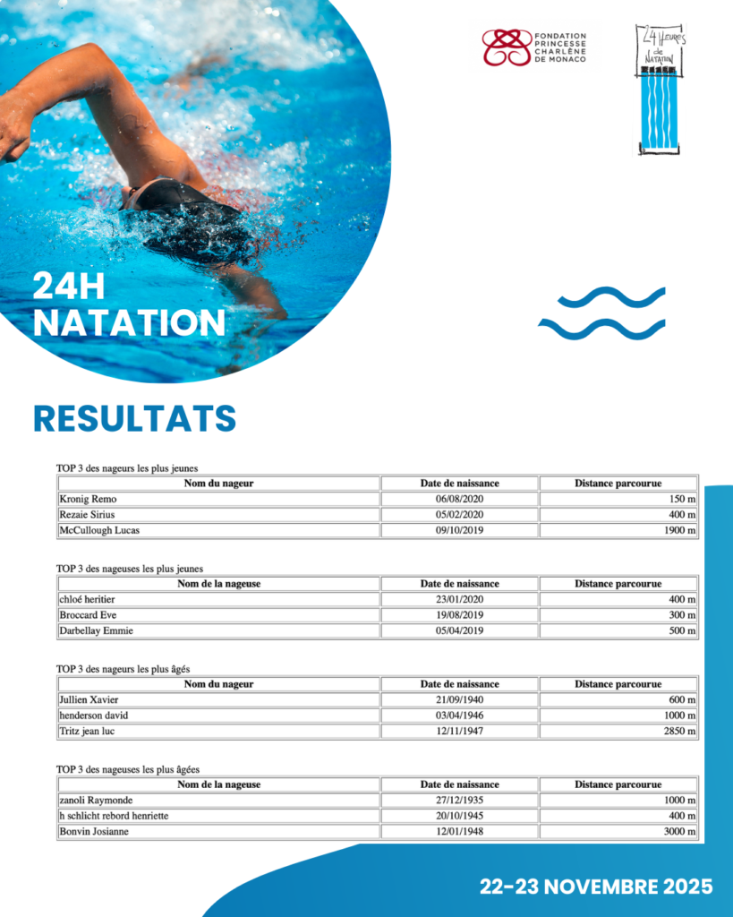 Résultats 24h00 de natation 2025